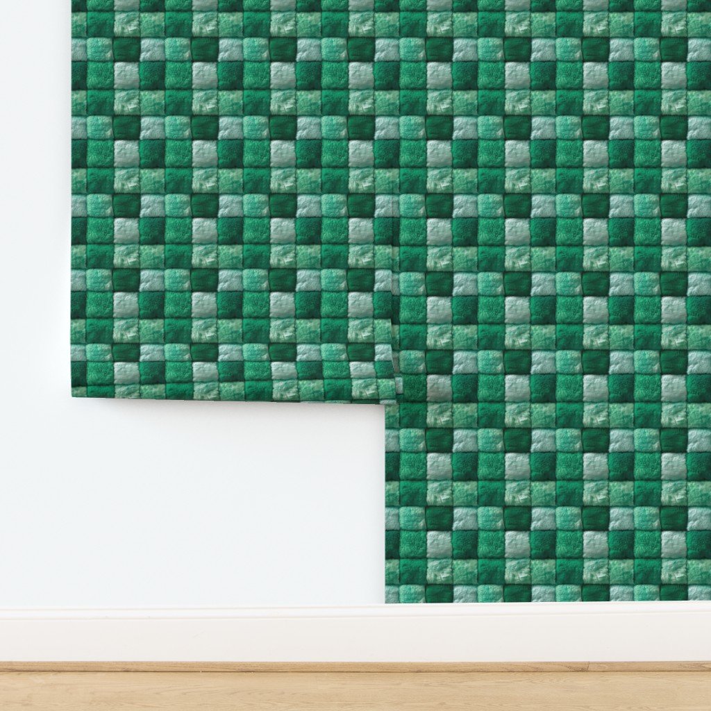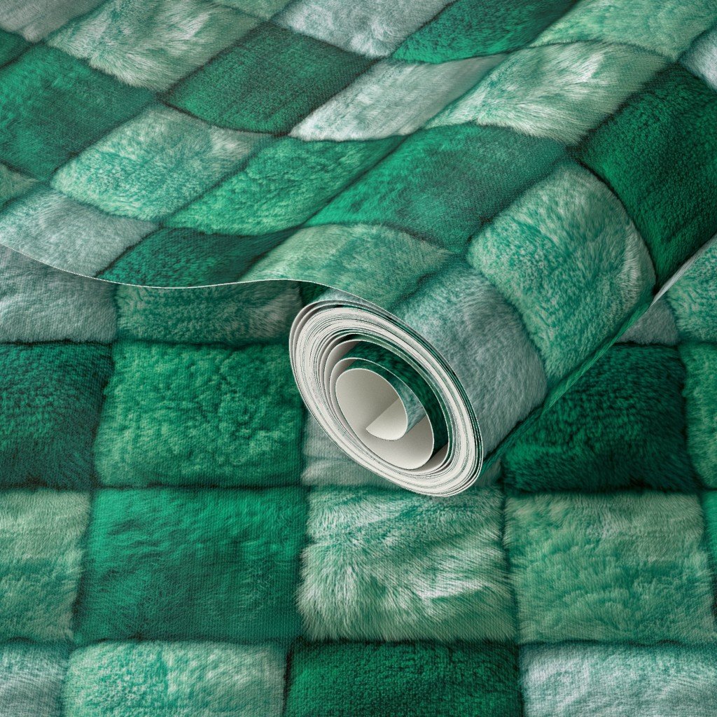 Small Jade and Seafoam Faux Fur Patchwork Fabric – Luxurious Plush Texture Wallpaper