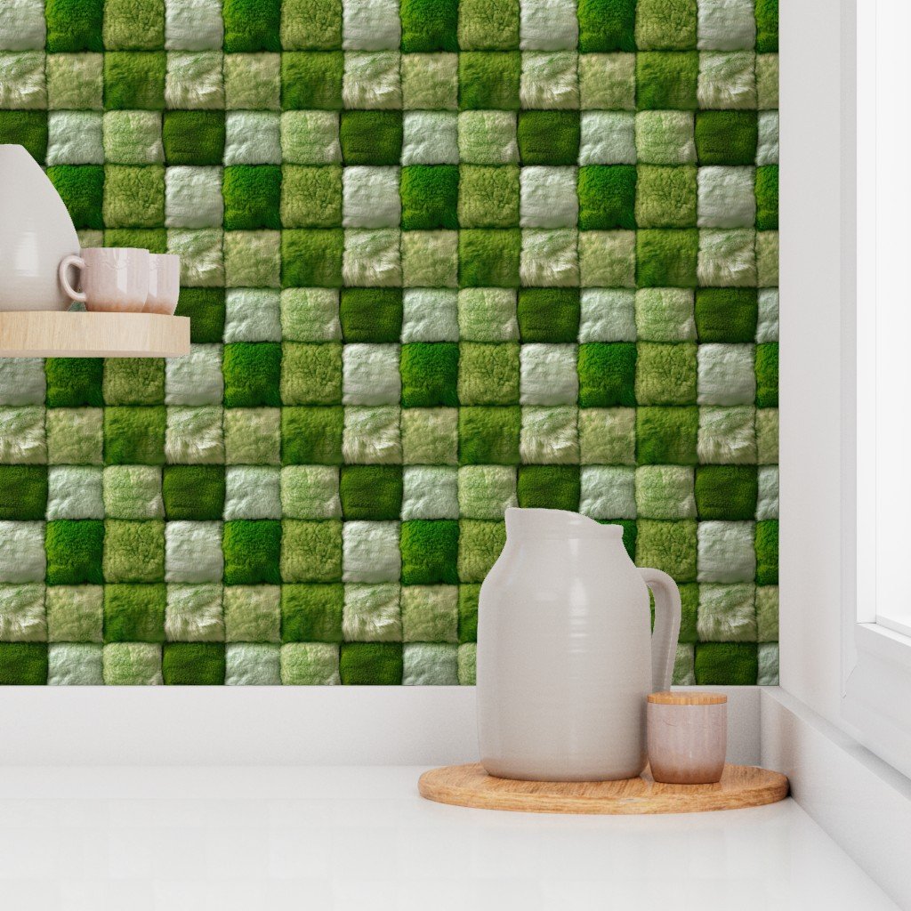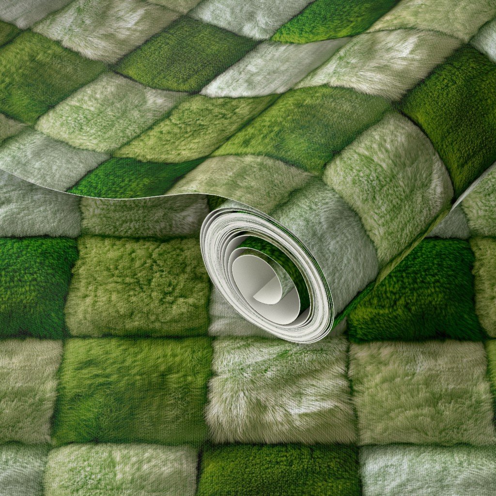 Vibrant lime and sage faux fur patchwork fabric offers a refreshing blend of bright lime green and soothing sage tones.