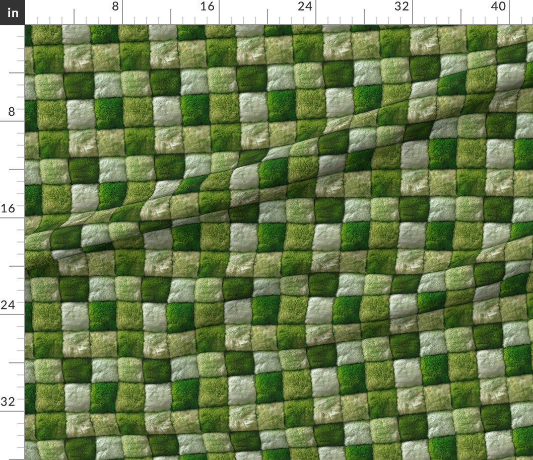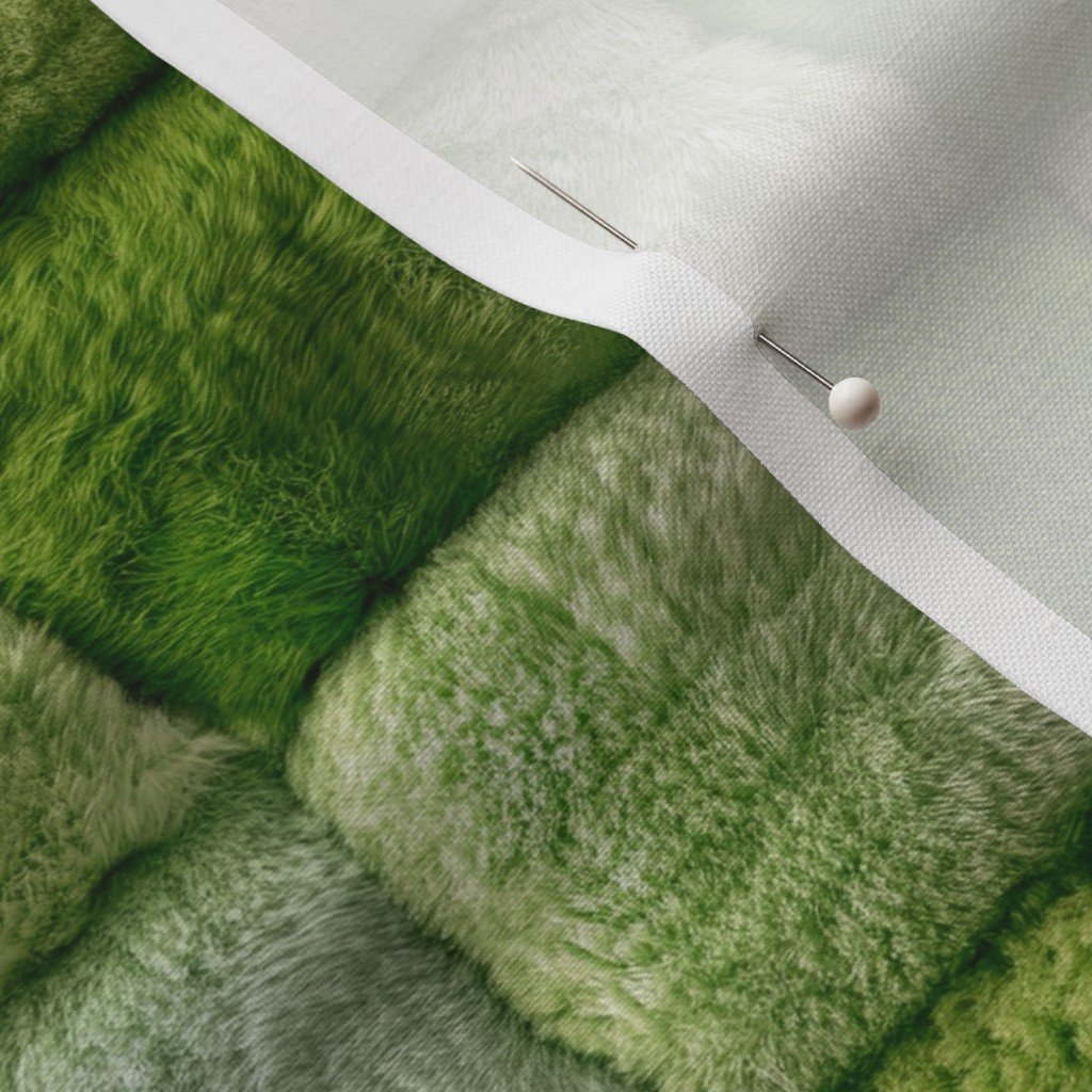Vibrant lime and sage faux fur patchwork fabric offers a refreshing blend of bright lime green and soothing sage tones.