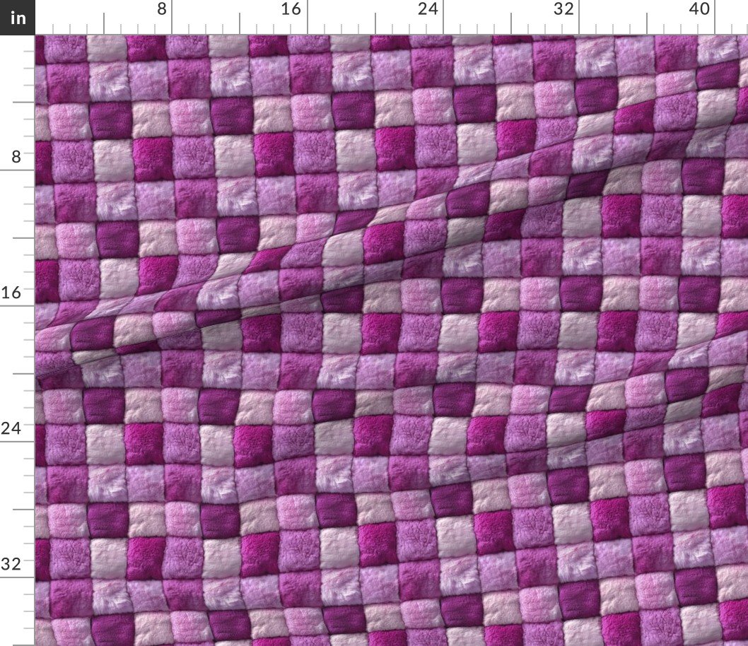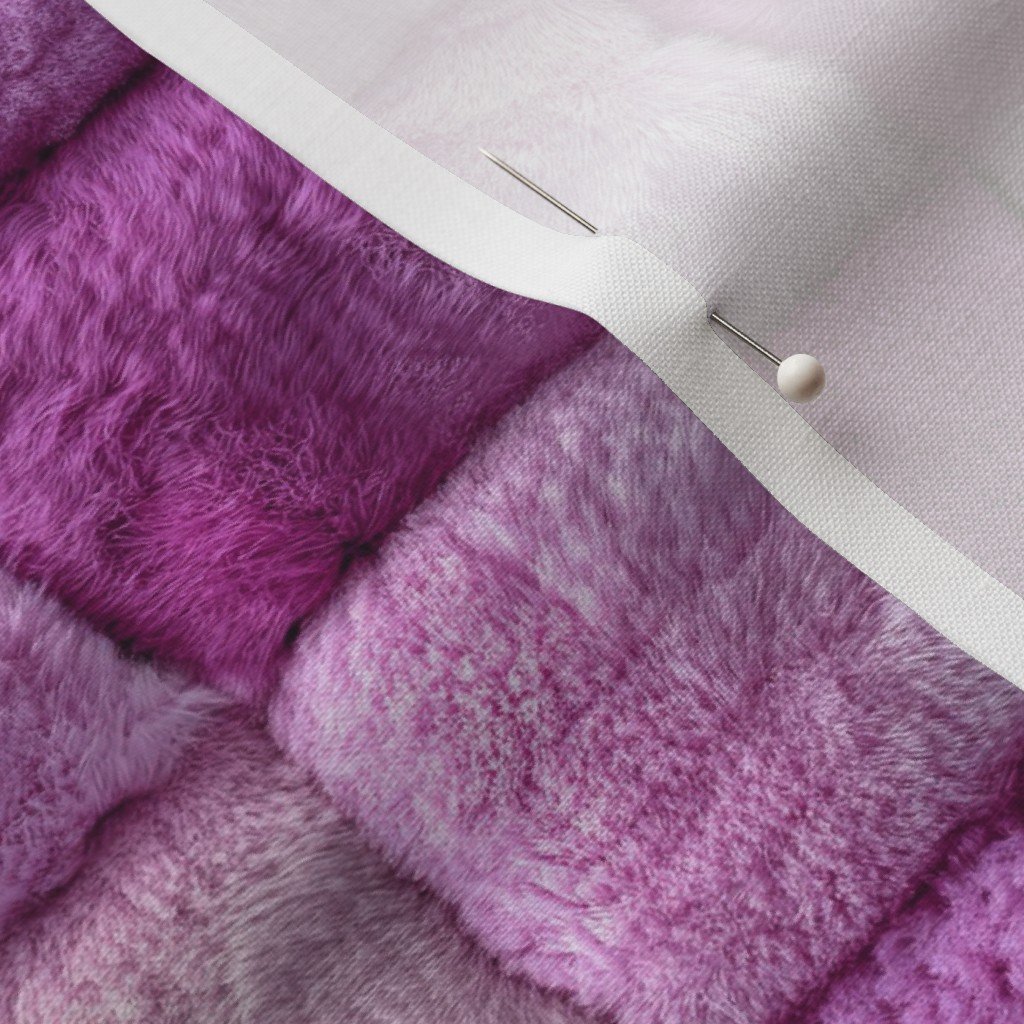 This magenta and pink faux fur patchwork fabric offers a vibrant combination of deep magenta and soft pink hues.
