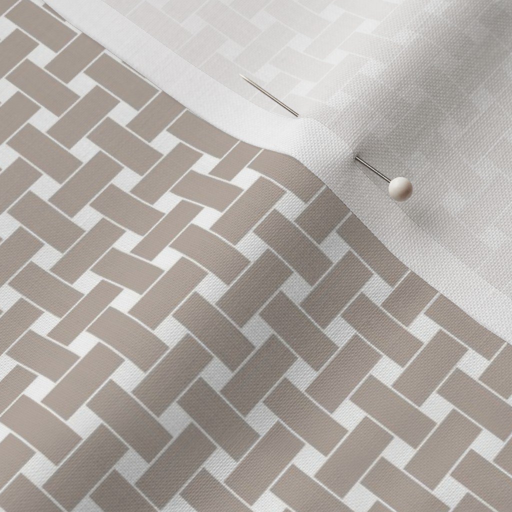 This small-scale cane weave pattern in Misty Taupe offers a soft geometric repeat over a crisp white background. Ideal for projects needing gentle contrast and fine detail, it works beautifully on cushions, tableware, accessories, or fabric pairings.