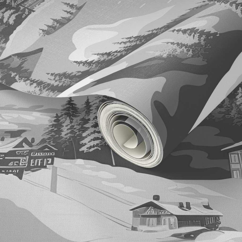 Charming vintage print of ski slope in greyscale