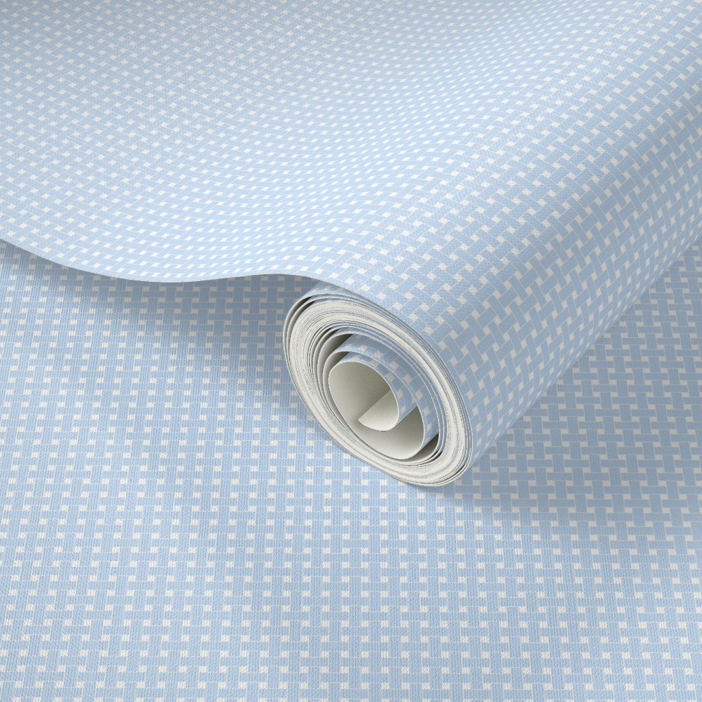 Small Pastel Baby Blue Cane Weave Pattern on White Background Wallpaper