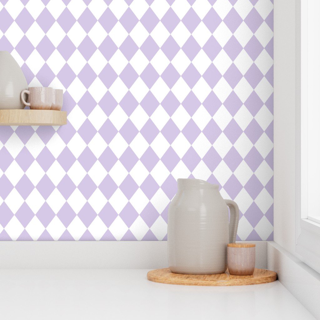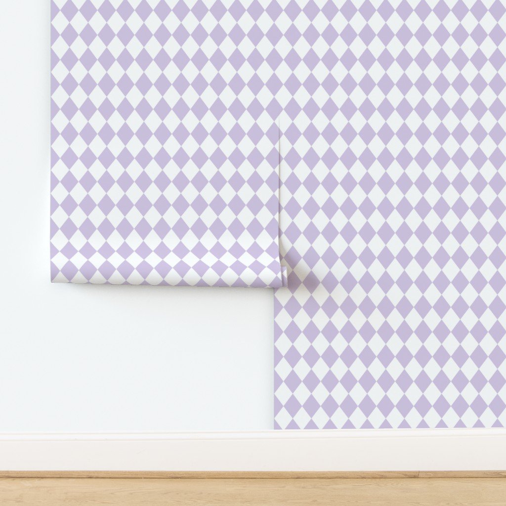 Small pastel lavender diamonds shimmer softly on white—perfect for delicate nursery decor, baby fabrics, or peaceful pastel design.