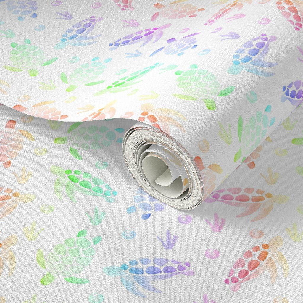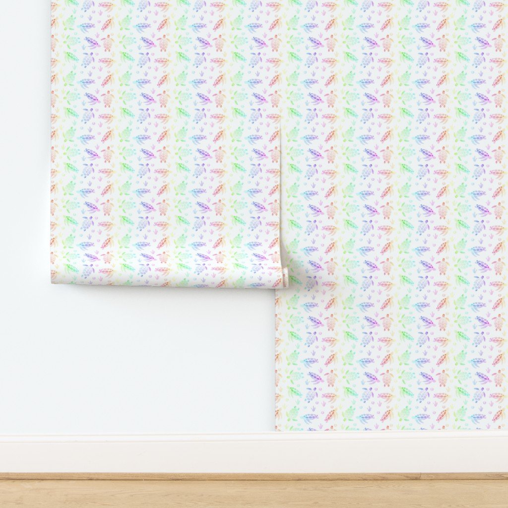 Adorable small watercolor sea turtles in ombre shaded rainbow