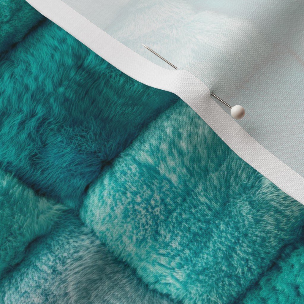 This turquoise faux fur patchwork fabric combines soft, plush textures with a vibrant, luxurious appearance.