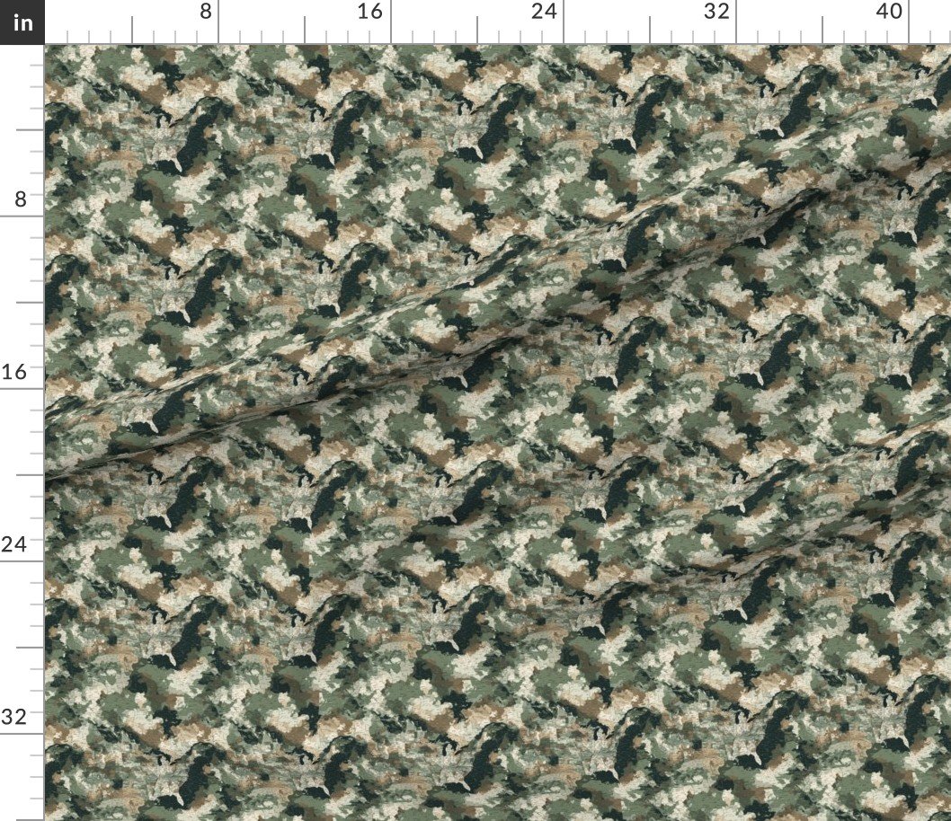 Small USA State Outline Camouflage Map Design in Earth Tone Green and Sand