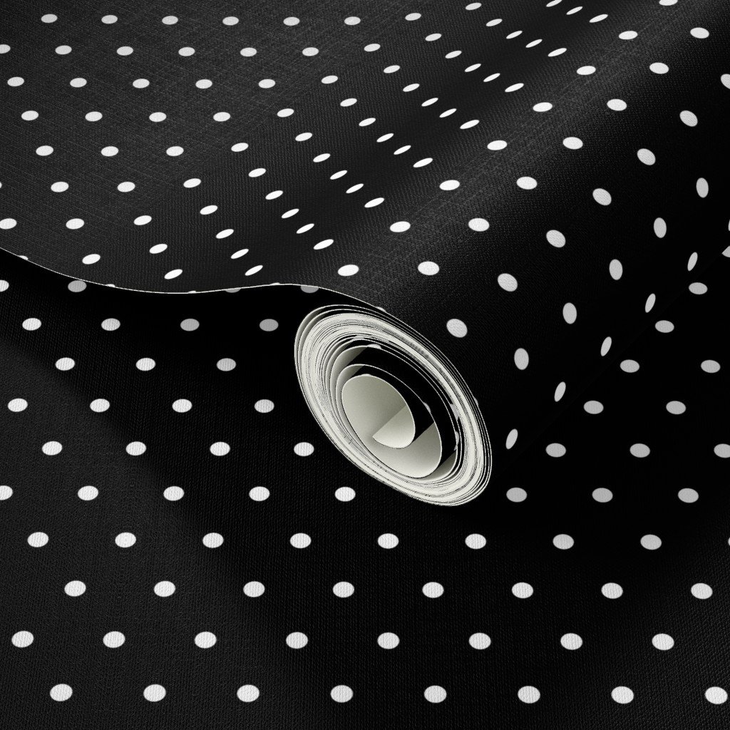 Diagonal diamond patterned small white polka dots on a black field