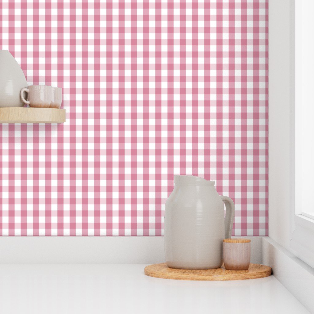 Fall Color Trends – Soft Pink Gingham Check is a checked plaid gingham pattern in a soft pink tone with white base.