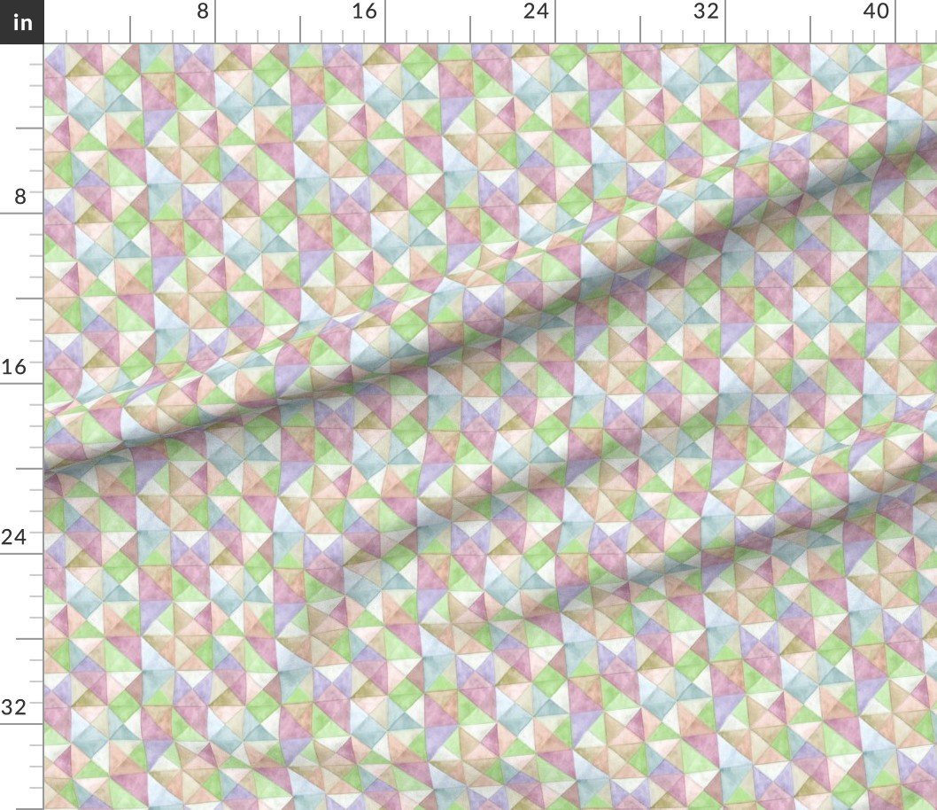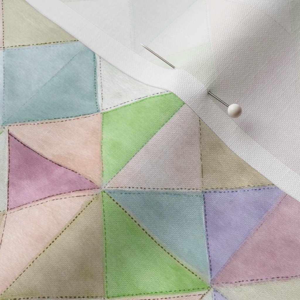 Fabric in Soft Watercolor Quilted Patchwork Triangles in Spring Green and Pastels