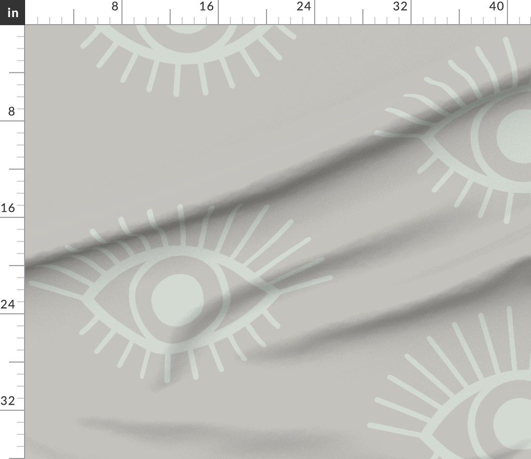 A wide, airy repeat of mystical eyes in pale sage and grey for a soft, sacred, nature-inspired feel.