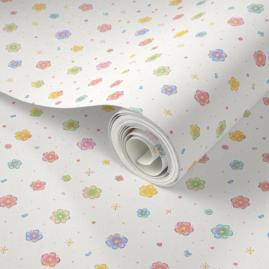 Spring Confetti Floral Watercolor Scatter Wallpaper