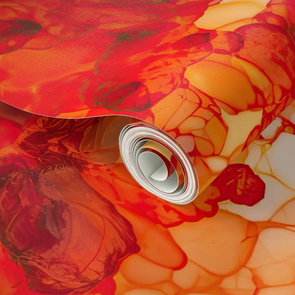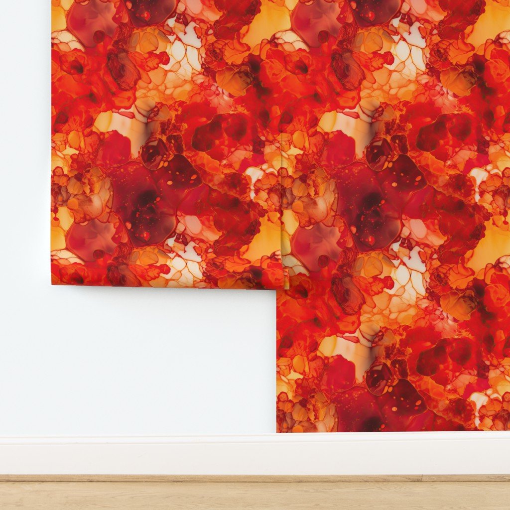 Sunset Orange and Red with Rose Gold Alcohol Ink Liquid Swirls Swirling liquid ink patterns in a Sunset pattern of orange, red and rose gold