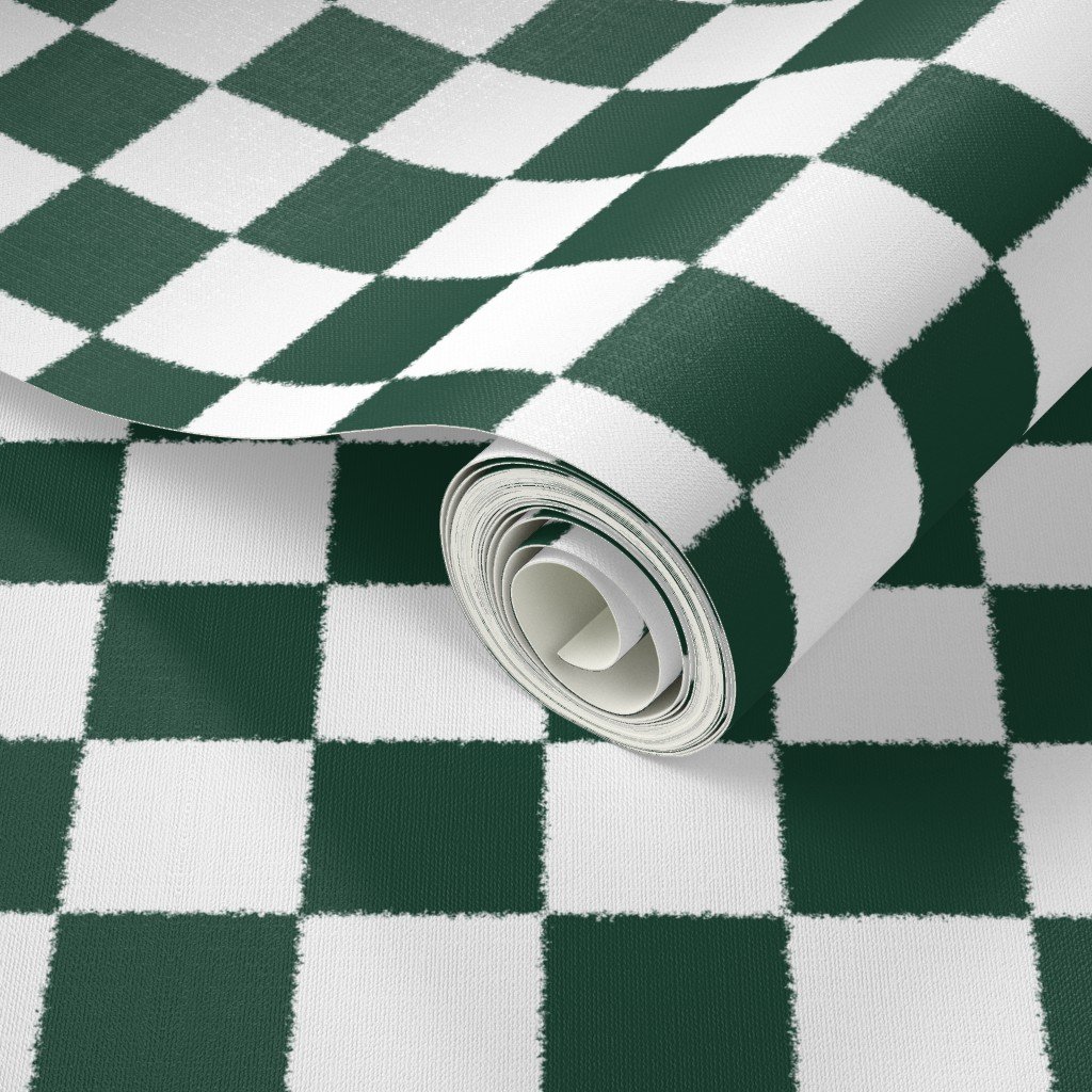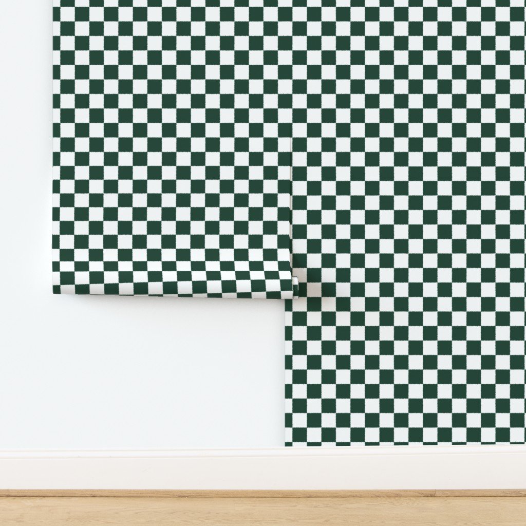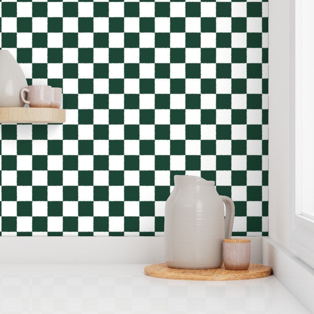 A rich forest green and white checkerboard pattern with tumbled edges evokes warmth and rugged beauty.