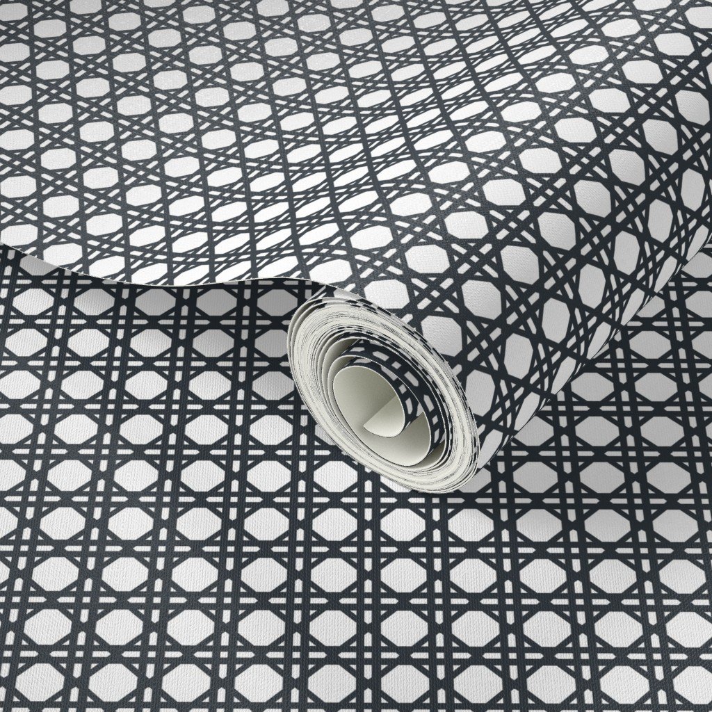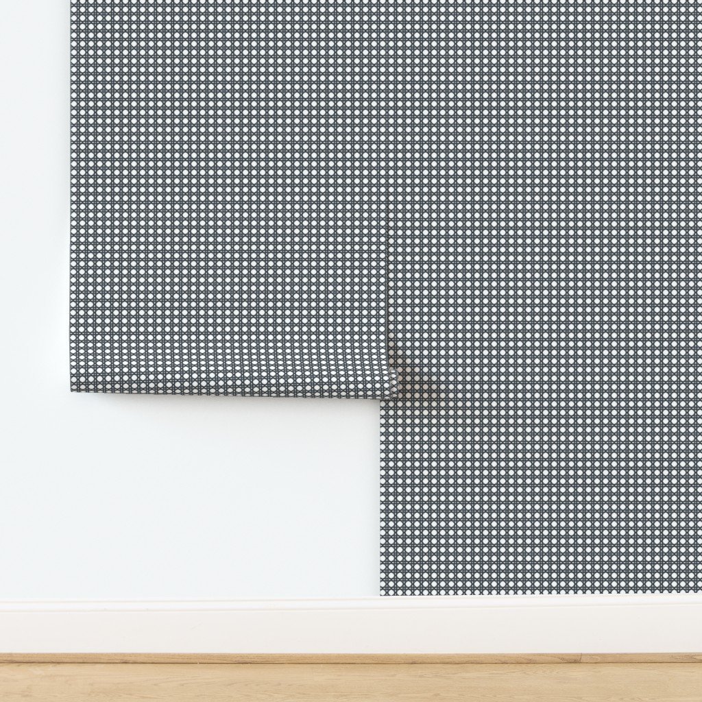 Woven rattan in twilight blue on white in symmetrical geometric shapes for French Provincial Winter coordinates