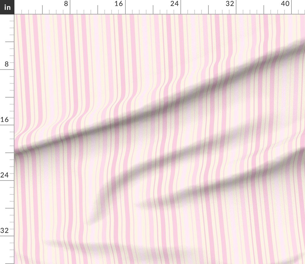 Timeless baby pink stripes on cream in a medium scale — perfect for bedroom drapery, quilt backing, or home accents that need a soft vintage touch.
