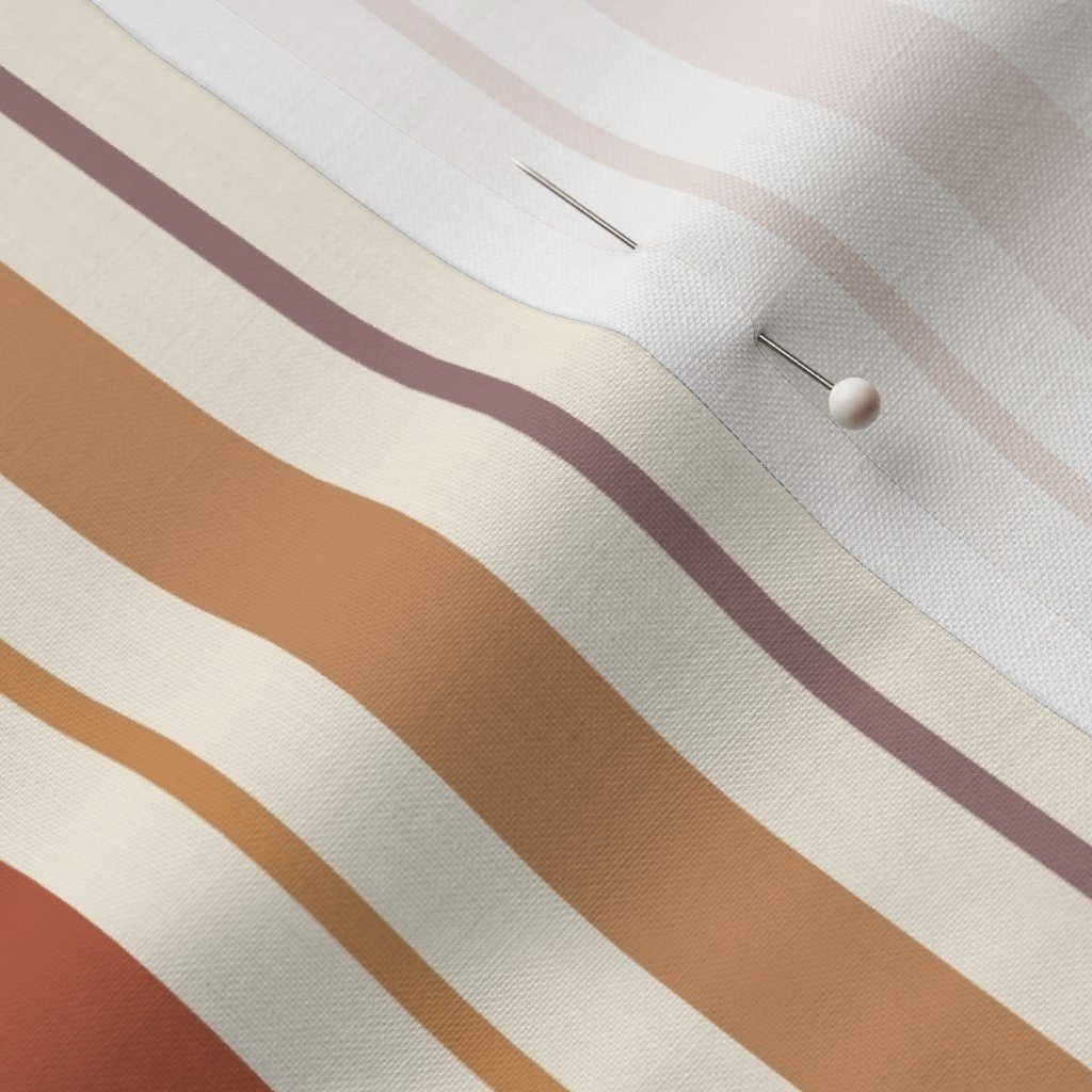 This mid-scale ticking stripe combines burnt terracotta, dusty mauve, clay rose, and toffee brown with creamy spacing for a calm, grounded feel. Ideal for pillowcases, curtains, quilts, or relaxed garments, this design adds timeless warmth to bedrooms
