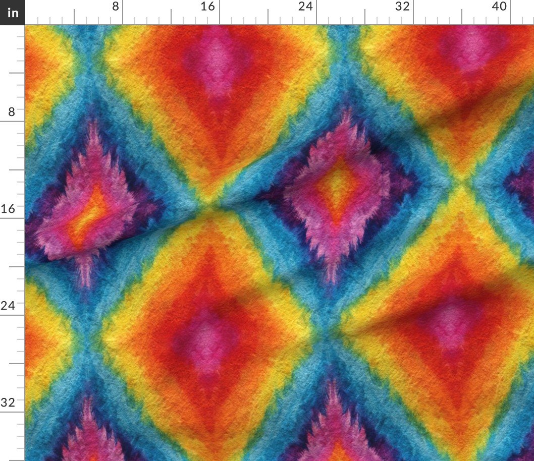 A vibrant watercolor diamond pattern inspired by traditional ikat motifs, featuring layered washes of rainbow color with soft, feathered edges. The hand-painted texture creates depth and movement, making this design ideal for statement fabric, wallpaper,