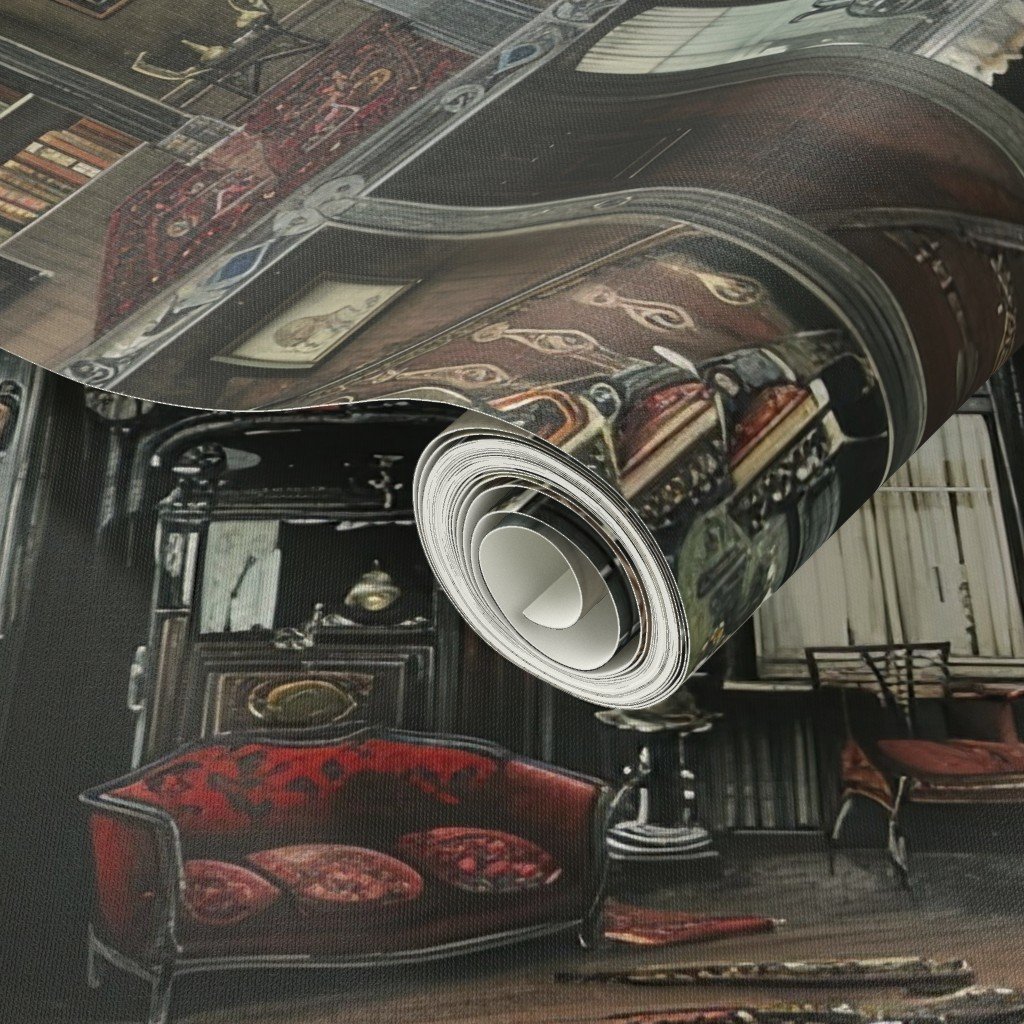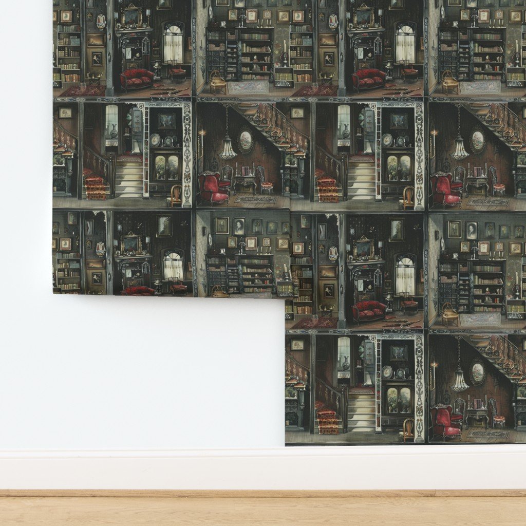 Victorian Gothic Dollshouse with Dark Academia Watercolor Decor 5 Wallpaper