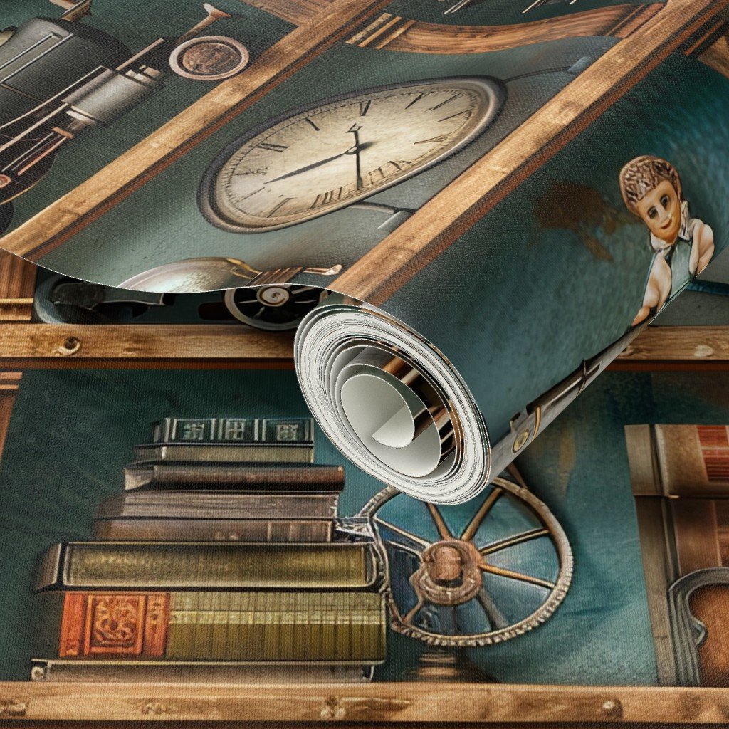 Be the first to review “Vintage Steampunk Bookcase with Trains Gears and Clocks Wallpaper”