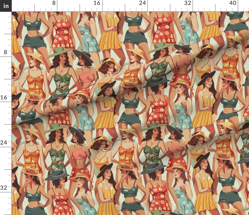 Vintage Women at the Beach in Summer in Sunhats and Suits Large Scale