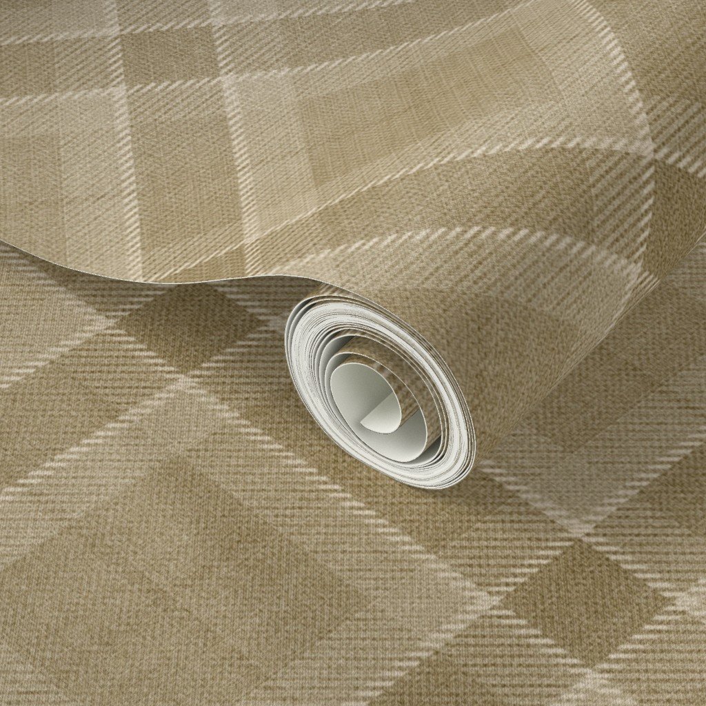 A diagonal tartan plaid in warm sand and soft taupe tones, rotated at a 45-degree angle for added movement and visual interest. The wool-like texture balances classic heritage style with a modern, dynamic layout.