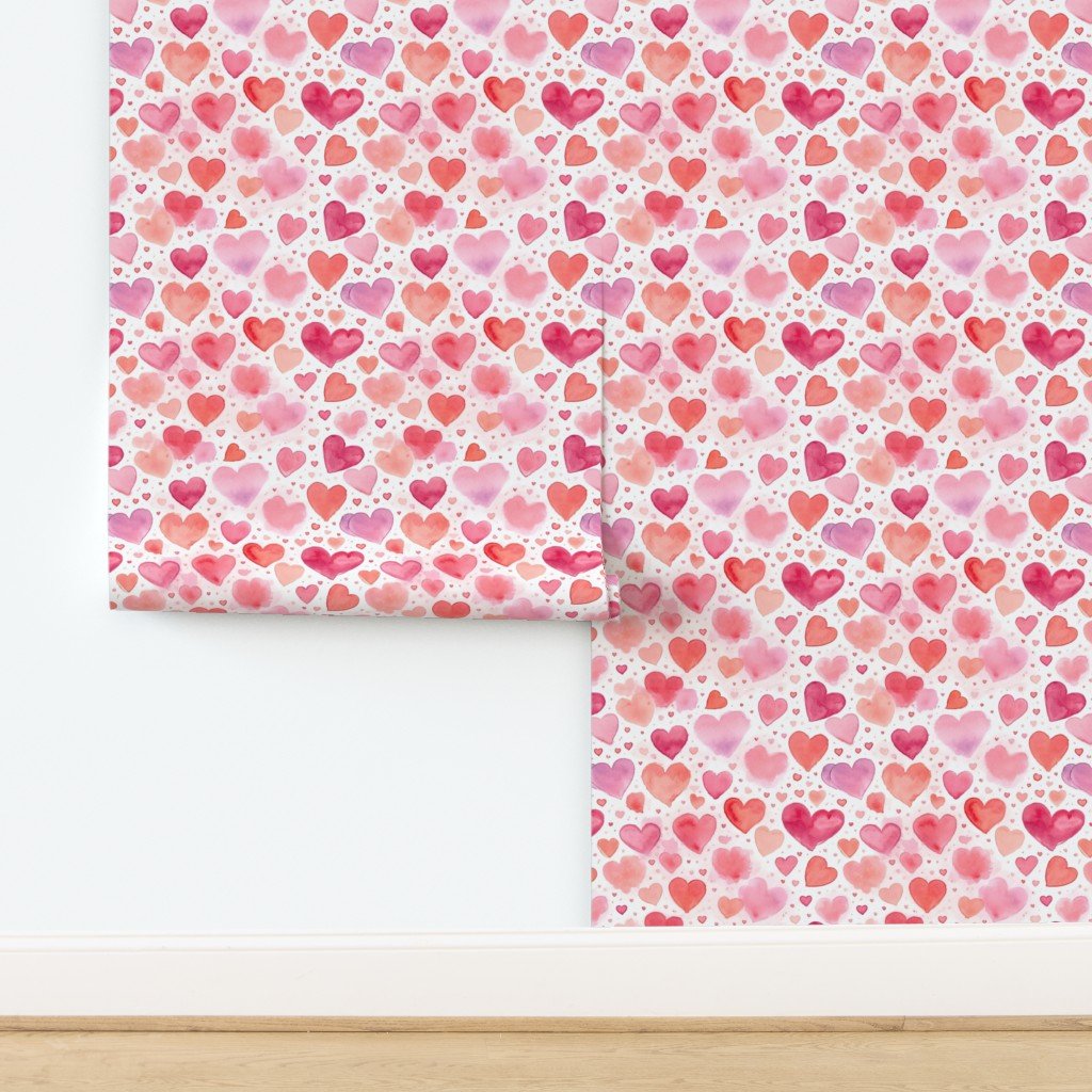 A fine mini-scale watercolor heart design in gentle pink and red hues. Perfect for doll clothes, trims, masks, baby items, and projects where a tiny, charming Valentine motif works best.