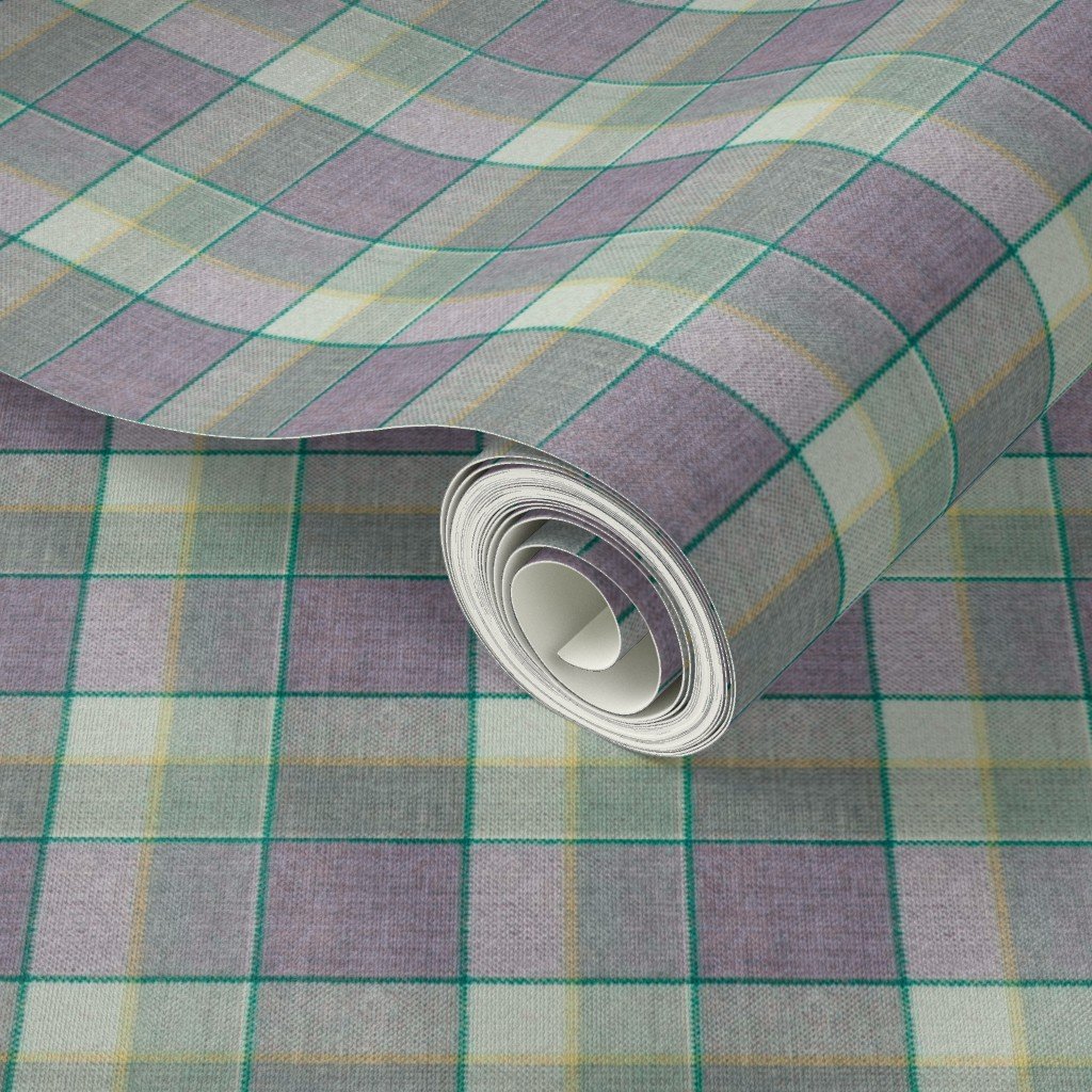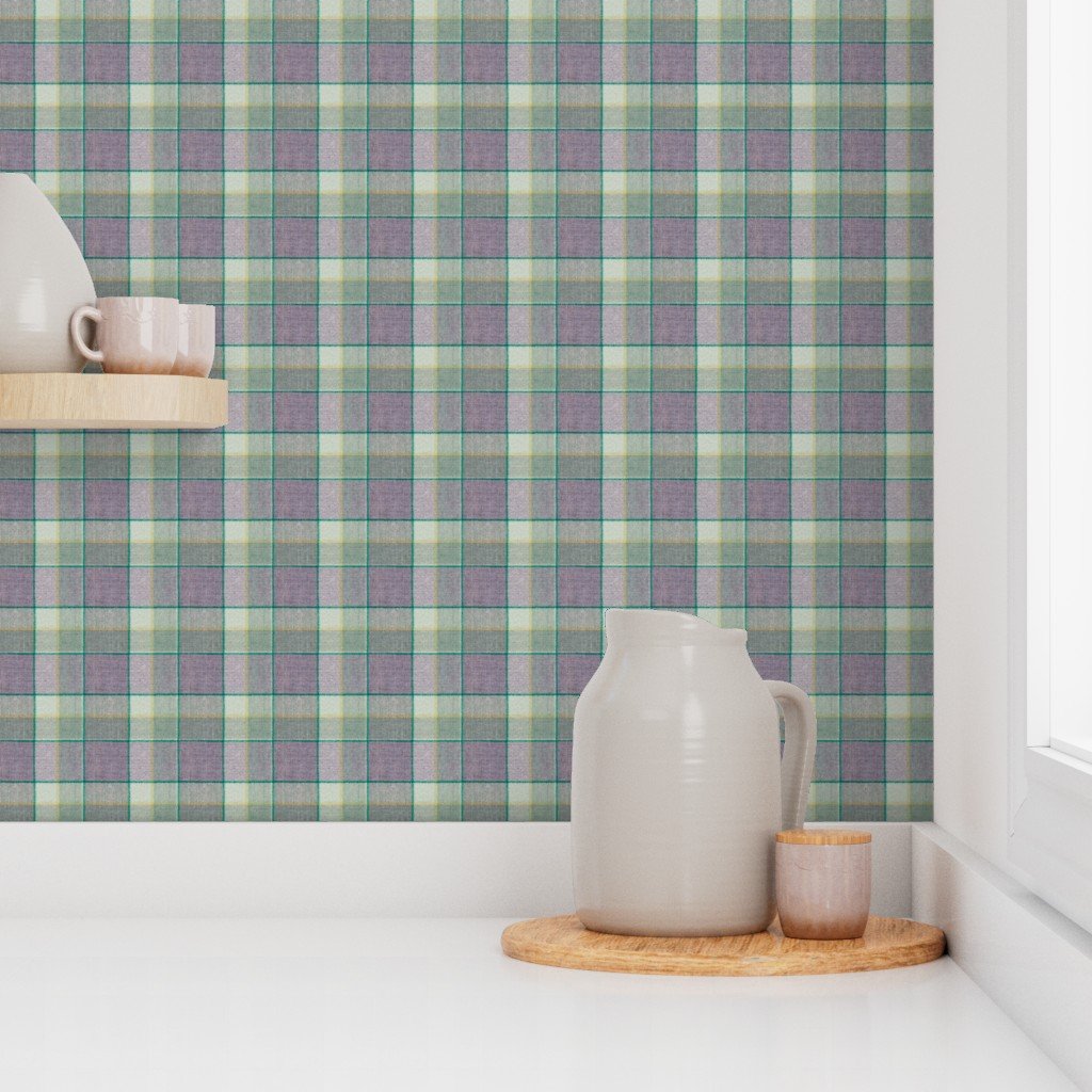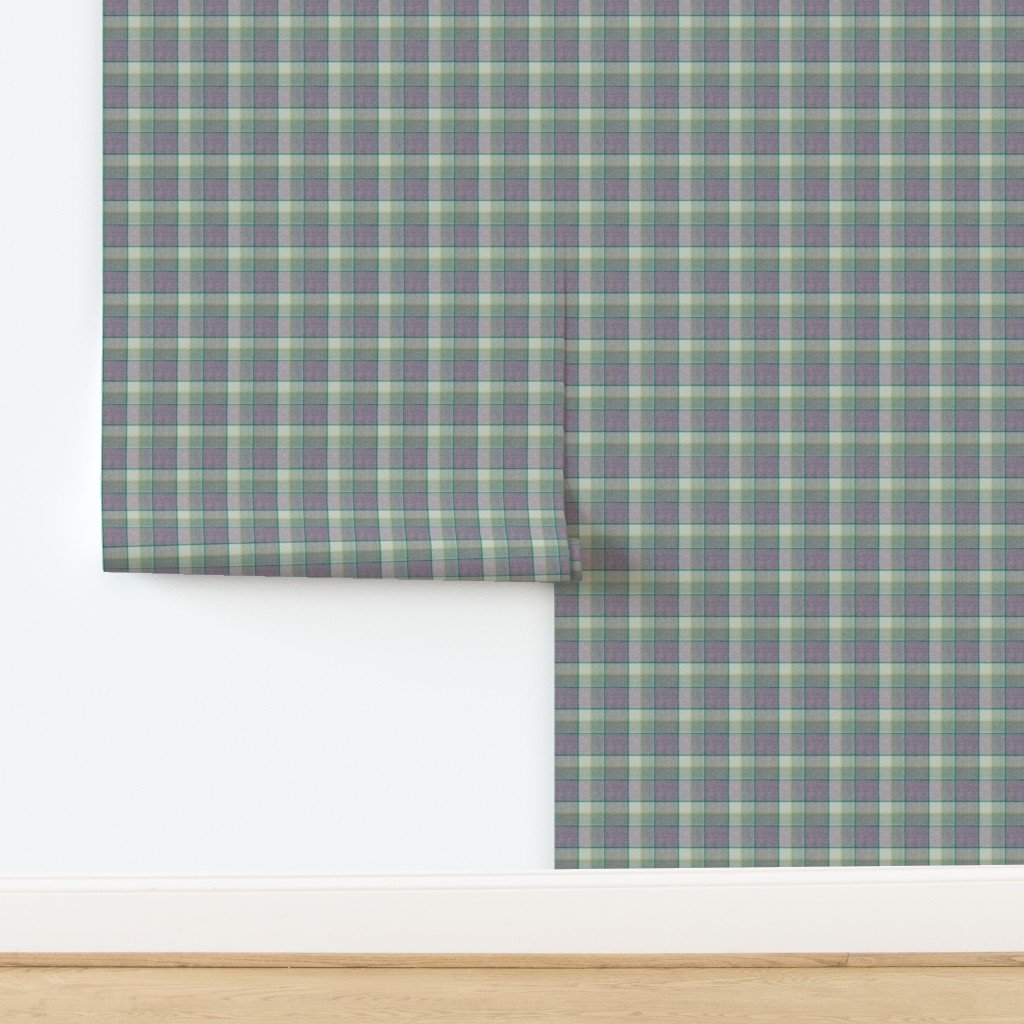 Weathered Wool Scottish Christmas Tartan with Sage Green and Lavender Wallpaper