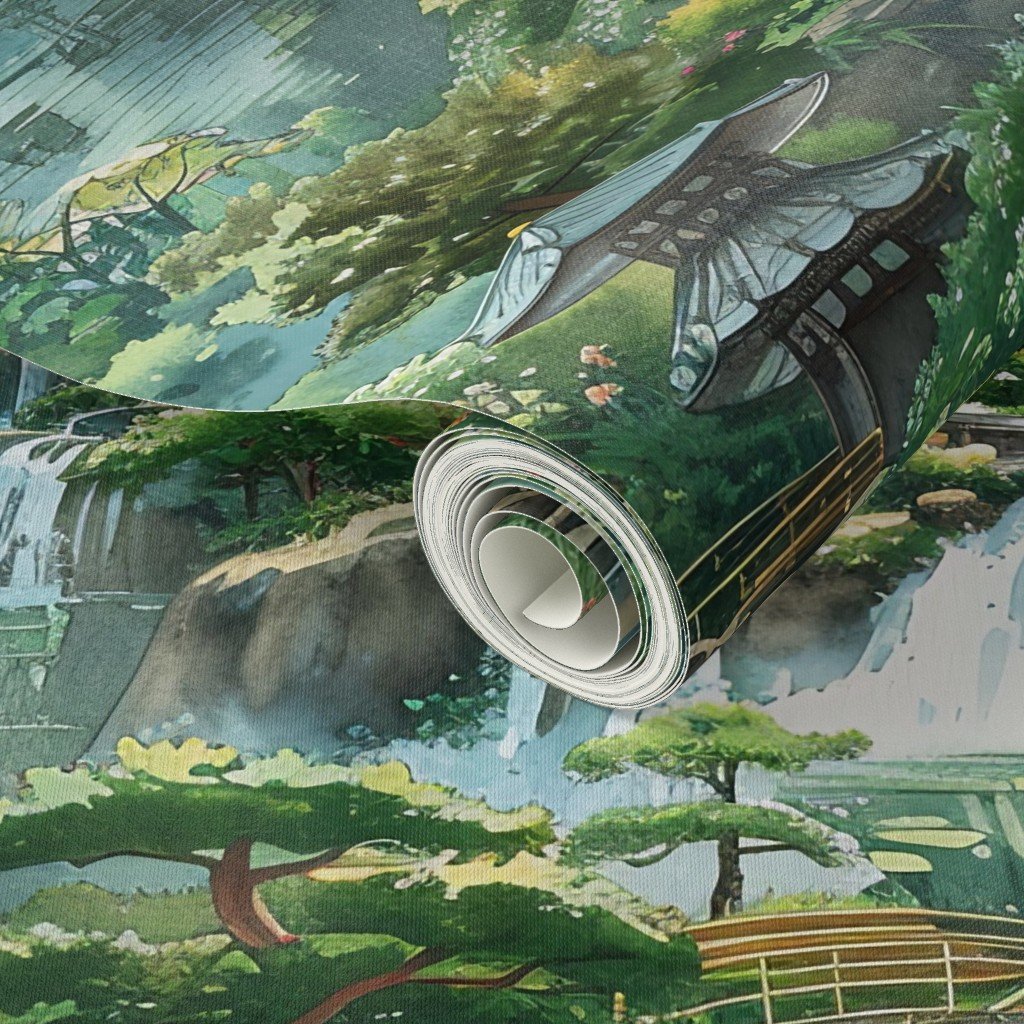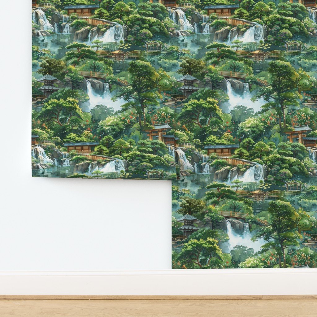Step into a world of serenity with this Japanese garden design, featuring cascading waterfalls and vibrant greenery.