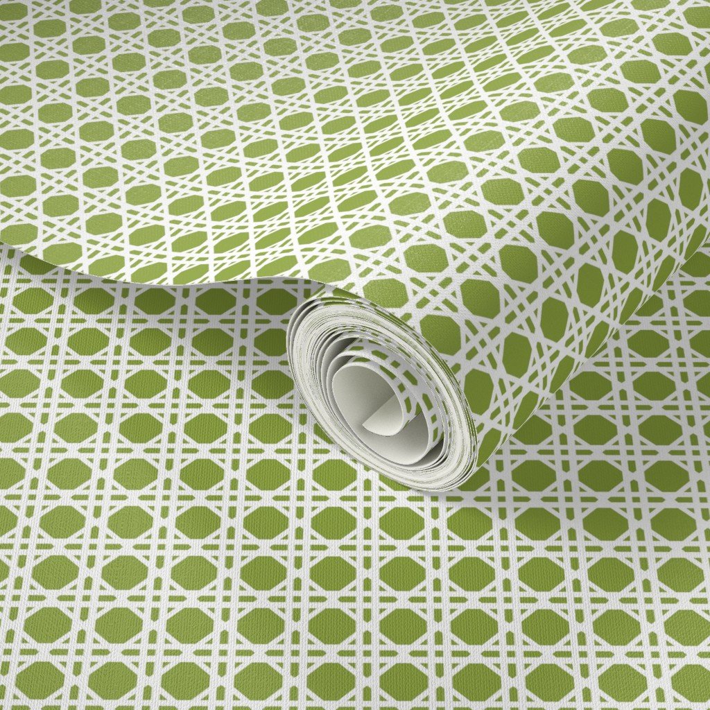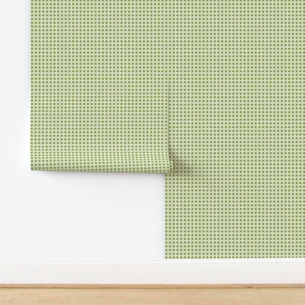 Woven rattan in white on grass green in symmetrical geometric shapes for French Provincial Spring coordinates