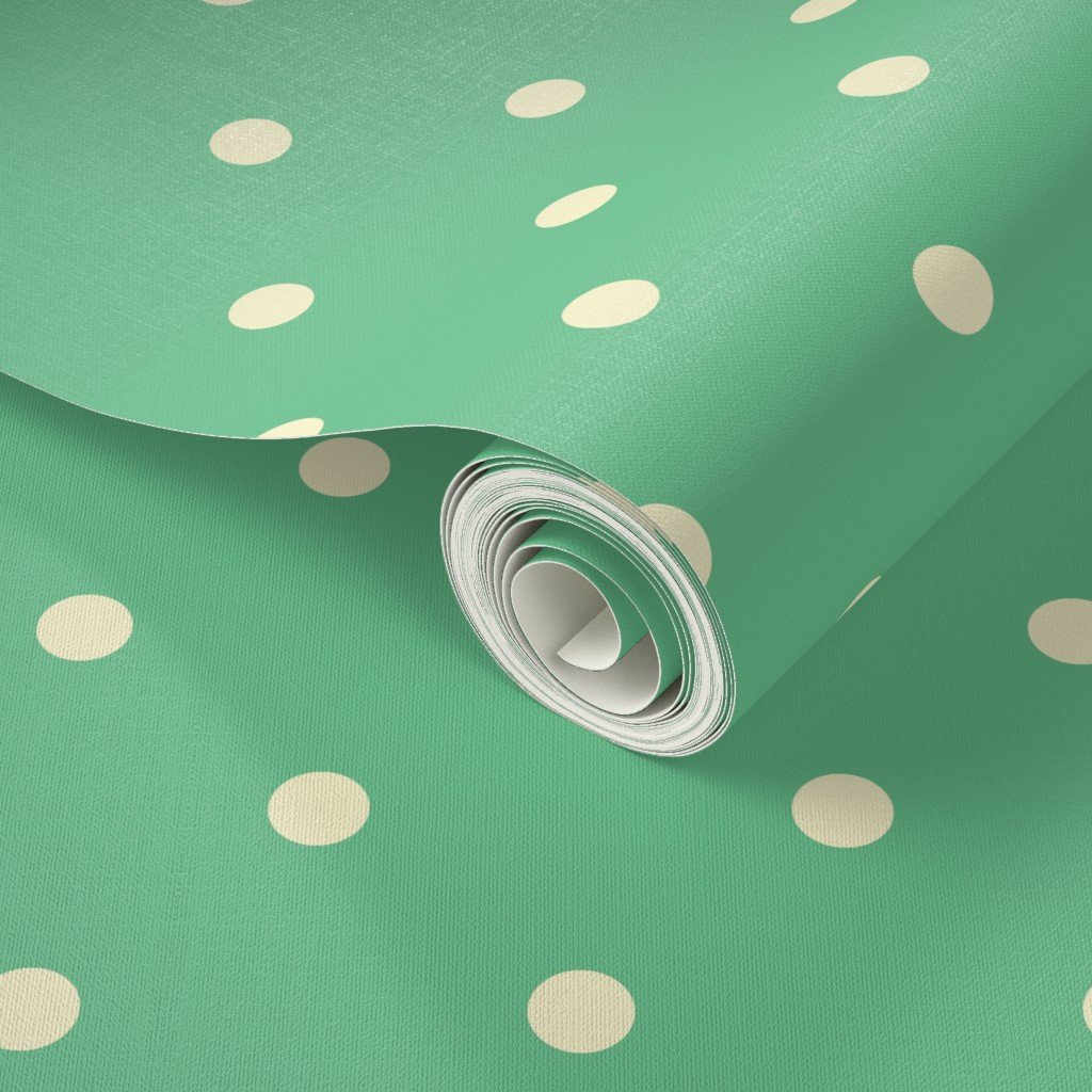Punchy polka dots in yellow gold on vintage Christmas green